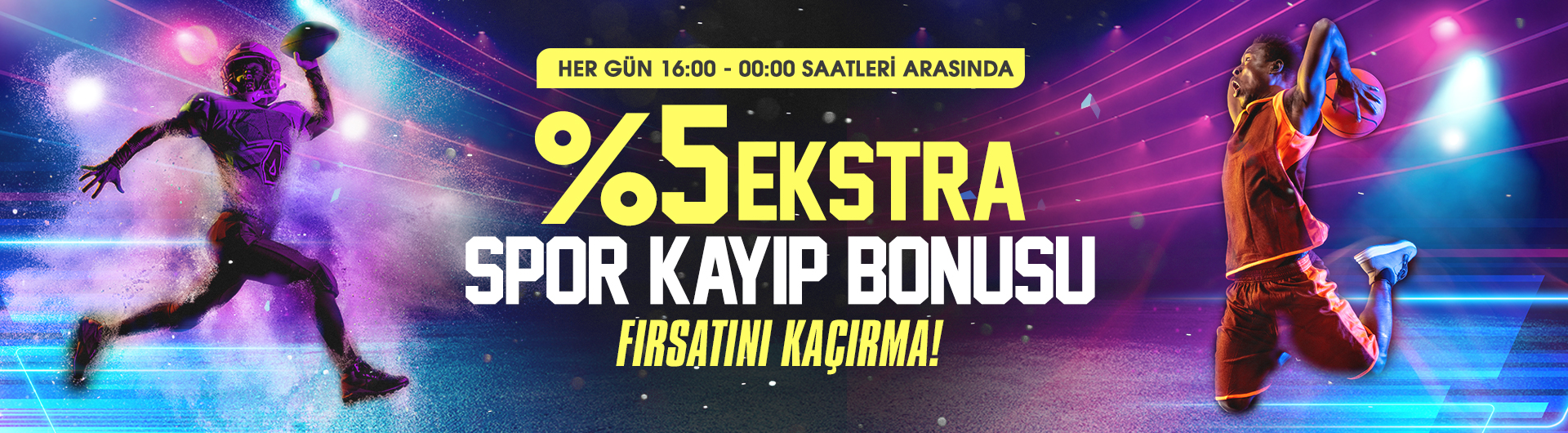 ★ 16.00 ile 00.00 saatleri arasında en az 100 TL tutarda yatırım ile spor alanında kayıp yaşanması durumunda %5 ek kayıp bonus hakkı bonus talep sayfamızdan talep edilmelidir. Hak edilen kayıp bonus tutarı anlık olarak kullanıcı hesabına eklenecektir. Belirlenen saat aralığı haricinde yapılan yatırımlar promosyon kapsamı dışındadır.